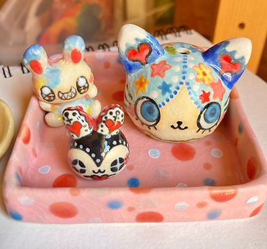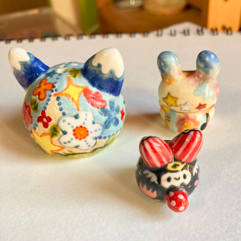 インスタの最後の投稿から約1年ほど経ちました。その間、私は陶芸について学んでいました。今まで絵を描き続けてきましたが、だんだんと立体作品を作りたい気持ちが強くなり、1〜2年前、独学で1から陶芸を学び始めました。今は生活と陶芸の勉強で精一杯の日々です。